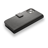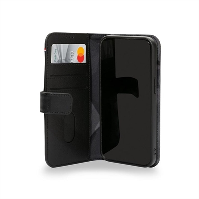Smart Decoded design læder cover til Iphone 13 mini i sort læder med klap og med plads til kort og pengesedler.