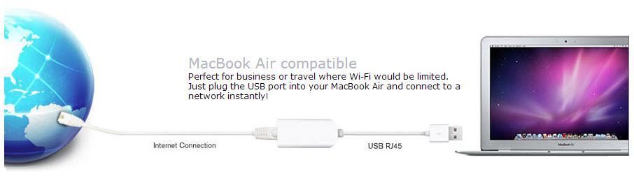 Perfekt på arbejde eller når du har begrænset WiFi på turen. Bare tilslut din MacBook Air USB-port og du er forbundet til et netværk direkte.