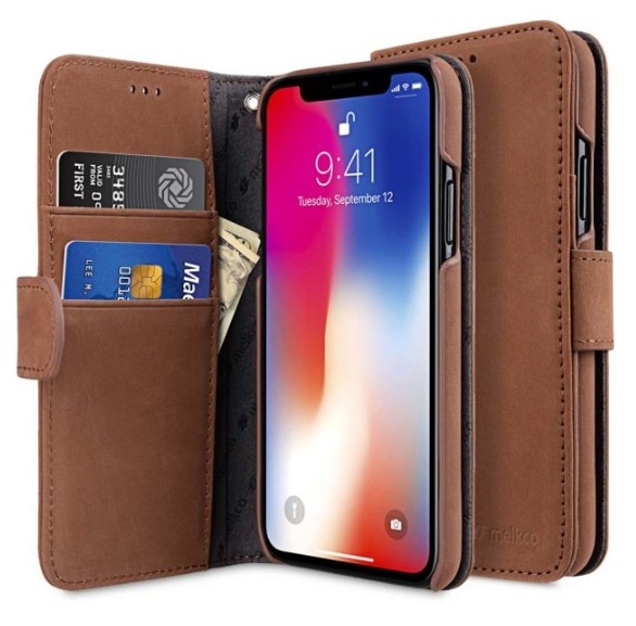 Melkco Wallet Book cover til  iPhone XS / X i brun ruskind med kreditkortholder