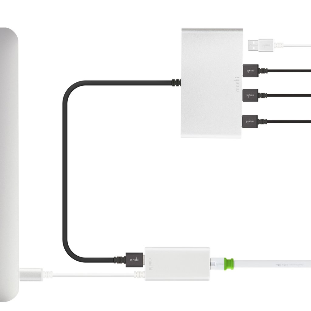 Tilslutter din USB-C bærbare computer via Gigabit Ethernet for dataoverførselshastigheder på op til 1.000 Mbit/s.